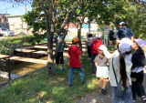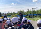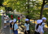 社会科の授業で学校の隣のみなみの散歩道に出かけました。地域の憩いの場でもあるみなみの散歩道、4月に一度歩いた時との違いはどこにあるでしょうか。葉っぱの大きさや虫の数、花が咲いている木の場所……児童たちは身近な季節の移ろいを感じていました。         |