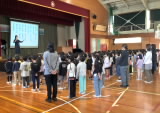 |  夏休み明けの全校朝会を行いました。久しぶりの登校日でしたが、児童たちは元気いっぱいで安心しました。 冒頭に陸上大会の表彰を行い、秋までの生活目標「きまりを守ろう」を守るため、改めて学校でのきまりについておさらいをしました。        |