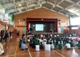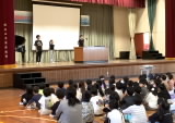 |  芸術鑑賞会を行いました。今年度は東京の劇団トマト座の皆様より「ミクロの三銃士」を上演いただきました。体育館には大掛かりなセットが組まれ、さながら小さな劇場のようです。 子どもたちが生の芸術活動を通じて、文化活動に興味を持ってくれればと思います。 劇団トマト座の皆様、遠いところお越しくださりありがとうございました。         |