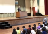 |  6月の全校朝会を行いました。校長先生より、教育実習に来ている2人の先生の紹介がありました。 6・7月の目標は「思いやりをもって行動しよう」となります。学校での活動が活発になる時期です。特に6年生は修学旅行を控えております。ぜひ、お互いを尊重しあい、いい修学旅行にしてもらいたいです。      |